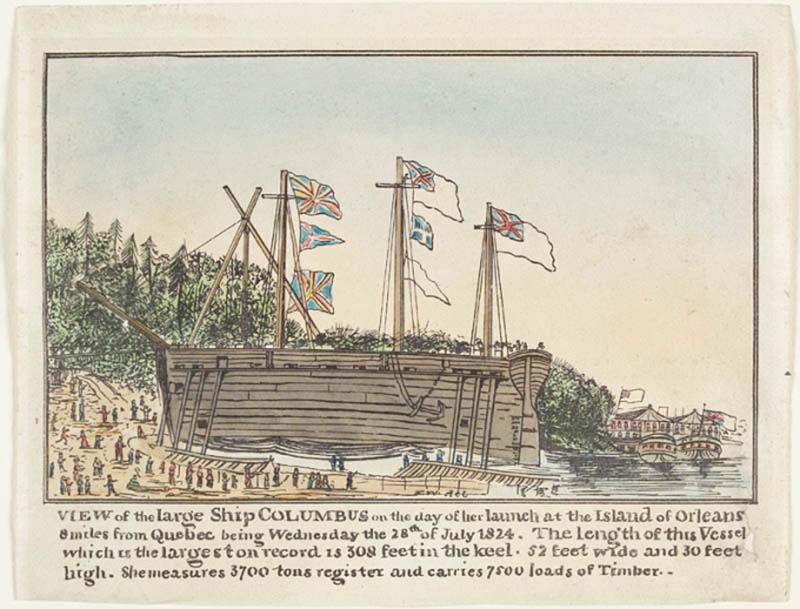 Năm 1824, Charles Wood đến Quebec, Canada, để giám sát quá trình đóng con tàu "dùng một lần" đầu tiên, Columbus. Về kích thước, nó rất lớn với chiều dài 91 m, rộng 15 m, cao 7 m. Nó nặng tới 3.690 tấn, gấp 10 lần trọng tải trung bình của tàu buôn gỗ.
