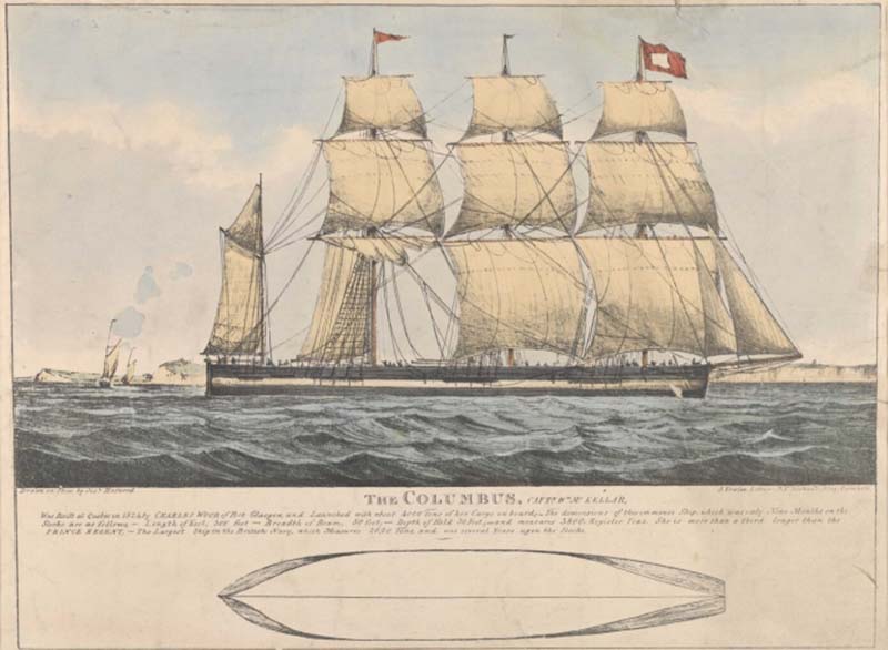 Tàu Columbus trong hành trình vượt Đại Tây Dương năm 1824. Ảnh: Harwood Joshiah/S. Vowles