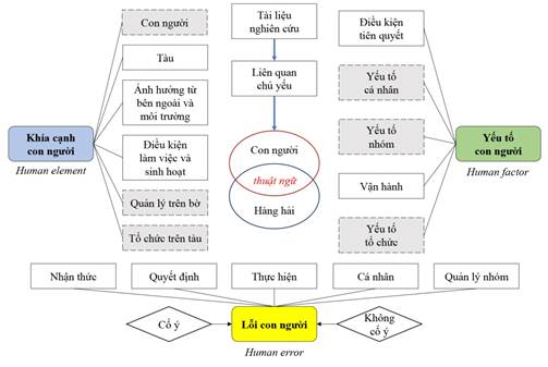 Vào năm 1998, Gordon nghiên cứu và quan sát thấy “yếu tố con người” và “lỗi của con người” được sử dụng thay thế cho nhau như những thuật ngữ chung [4]. Gần đây, tác giả Wróbel [11] phát hiện ra rằng việc sử dụng “yếu tố con người”, “khía cạnh con người”, “hành động của con người” và “lỗi của con người” có nhiều sự nhầm lẫn. Xiao Fei Ma cùng cộng sự cũng đã đưa những khái niệm này vào trong nghiên cứu của mình [12]. Việc sử dụng bừa bãi những thuật ngữ này có thể gây ra nhầm lẫn và làm giảm chất lượng đánh giá độ tin cậy của con người. Do đó, nhằm phân biệt rõ ràng về thuật ngữ chung “yếu tố con người” trong nghiên cứu này cần hiểu cụ thể cả ba khái niệm liên quan. Khái niệm đã được công nhận mô tả như dưới đây.