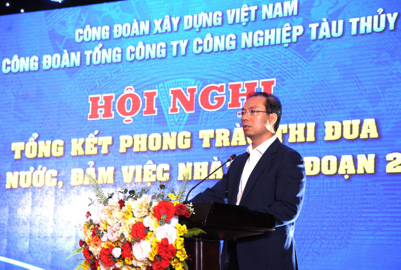 Ông Nguyễn Thanh Tùng – Ủy viên Ban Chấp hành Tổng Liên đoàn Lao động Việt Nam, Phó Chủ tịch Thường trực Công đoàn Xây dựng Việt Nam đã ghi nhận và biểu dương những kết quả nổi bật của phong trào thi đua “Giỏi việc nước, đảm việc nhà” Công đoàn Tổng Công ty Công nghiệp tàu thủy đạt được trong giai đoạn 2020 –2025. Theo đó, trong bối cảnh còn nhiều khó khăn, thách thức của ngành và nền kinh tế, đội ngũ nữ cán bộ, công nhân viên chức, người lao động trong Tổng Công ty đã không ngừng nỗ lực, phát huy tinh thần trách nhiệm, sáng tạo trong lao động sản xuất, từng bước khẳng định vai trò, vị thế của mình. Không chỉ hoàn thành tốt nhiệm vụ chuyên môn, nhiều chị em còn là điểm tựa vững chắc trong gia đình, góp phần xây dựng tổ ấm no ấm, tiến bộ, hạnh phúc. Đồng chí cũng đề nghị trong thời gian tới, Công đoàn Tổng công ty tiếp tục quan tâm, đổi mới nội dung và phương thức tổ chức phong trào thi đua theo hướng thiết thực, hiệu quả, gắn với nhiệm vụ sản xuất kinh doanh của đơn vị. Đồng thời, cần chú trọng công tác đào tạo, bồi dưỡng, tạo điều kiện để nữ lao động nâng cao trình độ chuyên môn, kỹ năng nghề nghiệp; quan tâm chăm lo đời sống vật chất, tinh thần, bảo vệ quyền và lợi ích hợp pháp, chính đáng của lao động nữ.