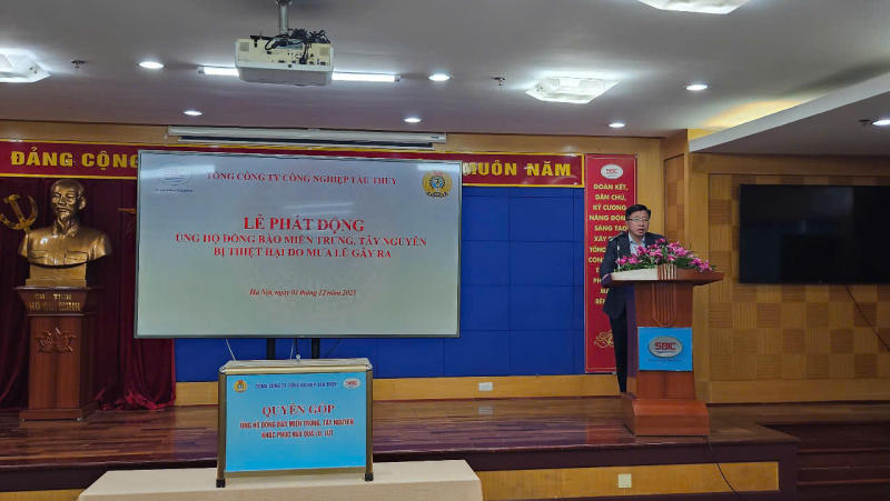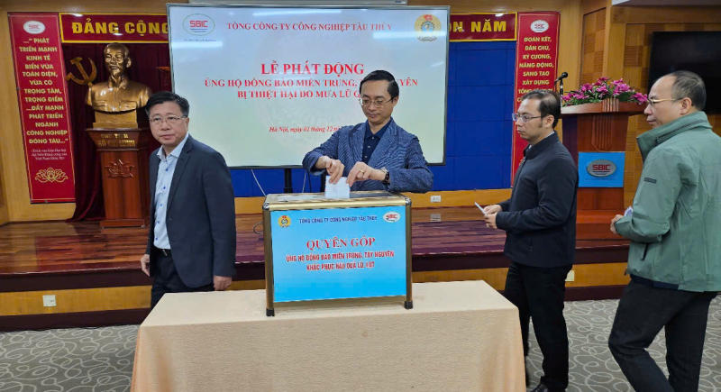 Hưởng ứng lời kêu gọi của Đoàn Chủ tịch Ủy ban Trung ương MTTQ Việt Nam; Triển khai Công văn số 194-CV/ĐU, ngày 26/11/2025 của Đảng ủy Bộ Xây dựng về việc ủng hộ đồng bào miền Trung, Tây Nguyên nhằm sẻ chia, hỗ trợ đồng bào vùng lũ vượt qua khó khăn, giúp bà con có thêm nguồn lực khắc phục hậu quả, sớm ổn định đời sống. Ngày 01/12/2025, tại trụ sở Tổng Công ty Công nghiệp tàu thủy (SBIC) Đảng ủy Tổng công ty Công nghiệp tàu thủy đã tổ chức Lễ phát động ủng hộ đồng bào các tỉnh miền Trung, Tây Nguyên bị thiệt hại do mưa lũ gây ra.