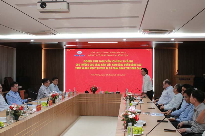 Phát biểu tại buổi làm việc, ông Nguyễn Chiến Thắng – Cục trưởng Cục Đăng kiểm Việt Nam đánh giá cao nỗ lực của Tổng công ty và các đơn vị thành viên trong việc duy trì hoạt động sản xuất, chủ động tìm kiếm đơn hàng, đảm bảo chất lượng sản phẩm, an toàn kỹ thuật và tuân thủ nghiêm túc các quy định về đăng kiểm. ông Nguyễn Chiến Thắng khẳng định Cục Đăng kiểm Việt Nam sẽ tiếp tục đồng hành, hỗ trợ các doanh nghiệp ngành đóng tàu trong công tác chuyên môn, hướng dẫn thực hiện các tiêu chuẩn kỹ thuật mới, đồng thời lắng nghe và tháo gỡ những khó khăn, bất cập từ thực tiễn sản xuất.