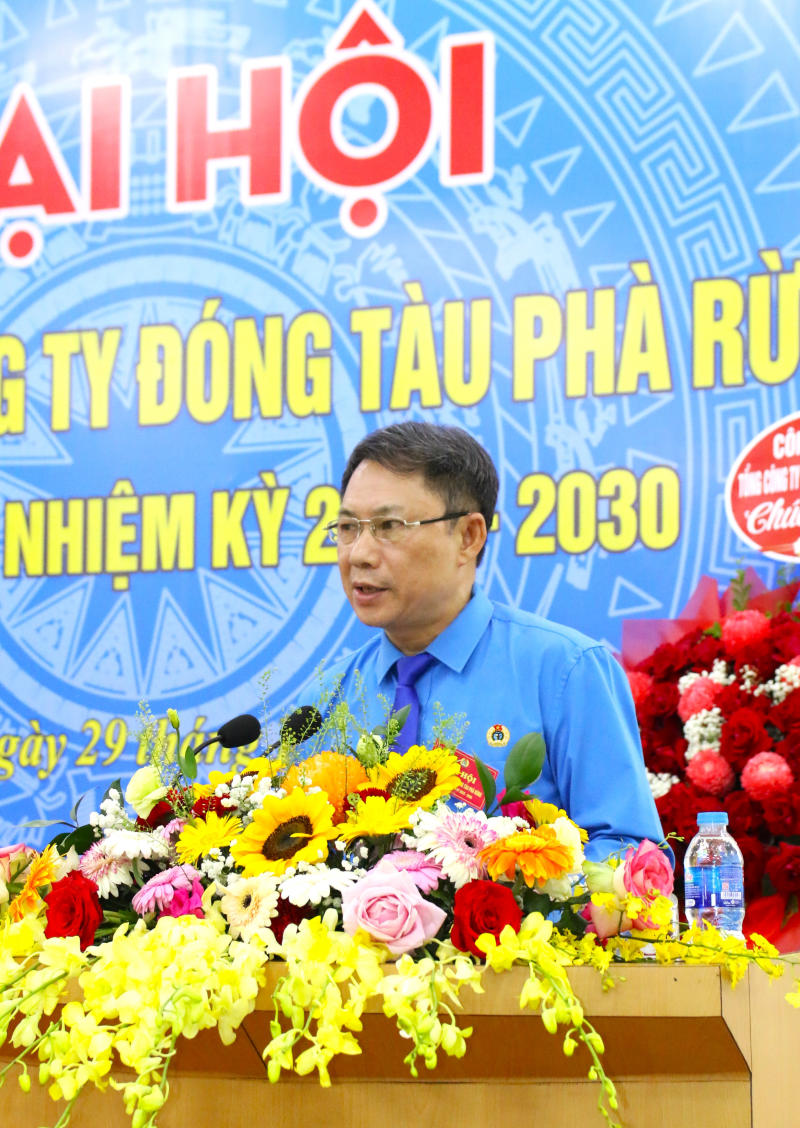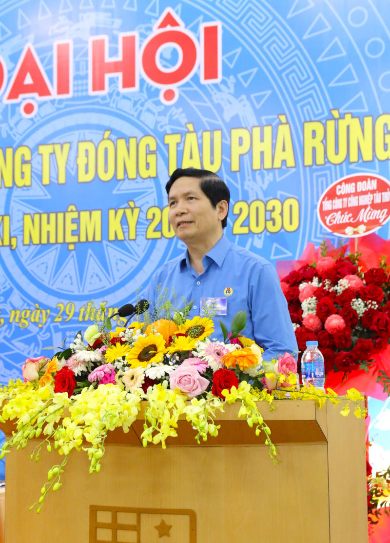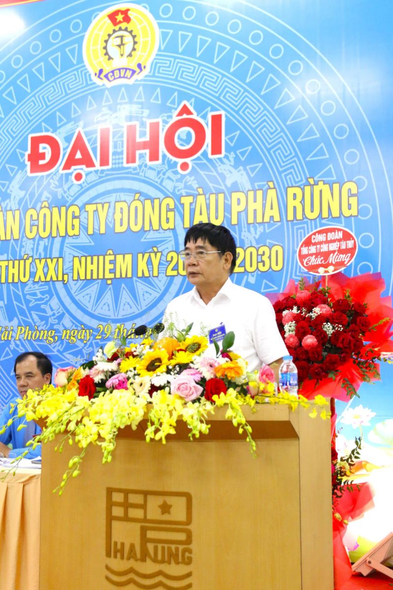Ông Trần Bá Thành - Chủ tịch Công đoàn Tổng công ty Công nghiệp tàu thuỷ, phát biểu chỉ đạo Đại hội