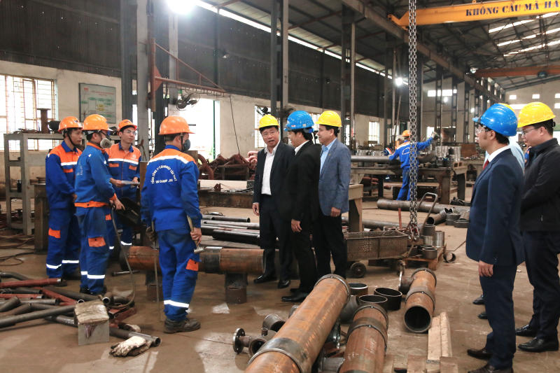 Đoàn công tác do ông Phạm Hoài Chung - Chủ tịch HĐTV SBIC dẫn đầu kiểm tra sản xuất tại Công ty Đóng tàu Sông Cấm
