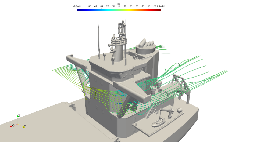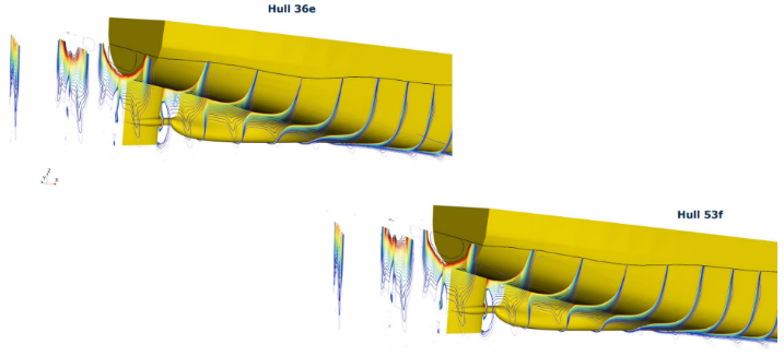 +) Tối ưu hóa tuyến hình thân tàu bằng thử nghiệm mô hình tại bể thử theo quy định của Tổ chức ITTC, kết hợp tính toán thủy động lực học thân tàu để tối ưu hóa sức cản nhằm tăng tốc độ tàu và giảm thiểu công suất máy chính từ đó giảm thiểu khí thải môi trường.