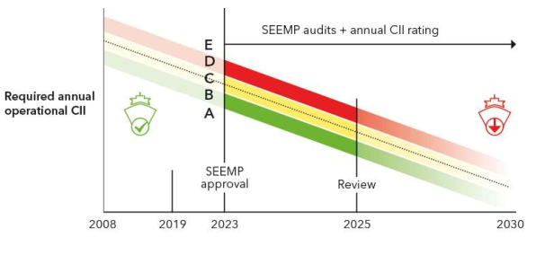 Với mục tiêu cắt giảm khí thải nhà kính (GHS)[7] nhằm bảo vệ lại sự biến đổi khí hậu toàn cầu, Tổ chức hàng hải IMO đã đưa ra quy định bắt buộc cho tàu trong ngành vận tải biển nhằm giảm thiểu khí thải môi trường, cụ thể quy định cắt giảm khí thải CO2 đến 40% vào năm 2030 và mục tiêu 70% năm 2050 so với quy định từ 2008. Hơn nữa Ủy ban Châu âu (EU) đã quy định đối với tất cả các tàu trong mọi Quốc gia khi cập cảng Châu âu bắt buộc đáp ứng cắt giảm khí thải CO2 ít nhất 50% vào năm 2030 so với quy định năm 1990 và hướng tới Net zezo vào năm 2050.
