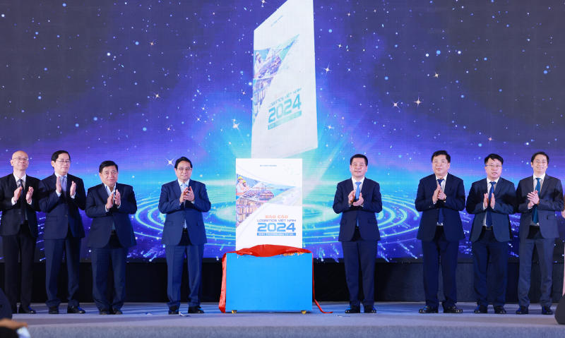 Thủ tướng Phạm Minh Chính và các đại biểu thực hiện nghi thức công bố Báo cáo Logistics Việt Nam 2024