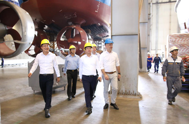 Đoàn công tác do ông Phạm Hoài Chung - Chủ tịch HĐTV SBIC dẫn đầu thăm cơ sở sản xuất của Công ty Damen Sông Cấm